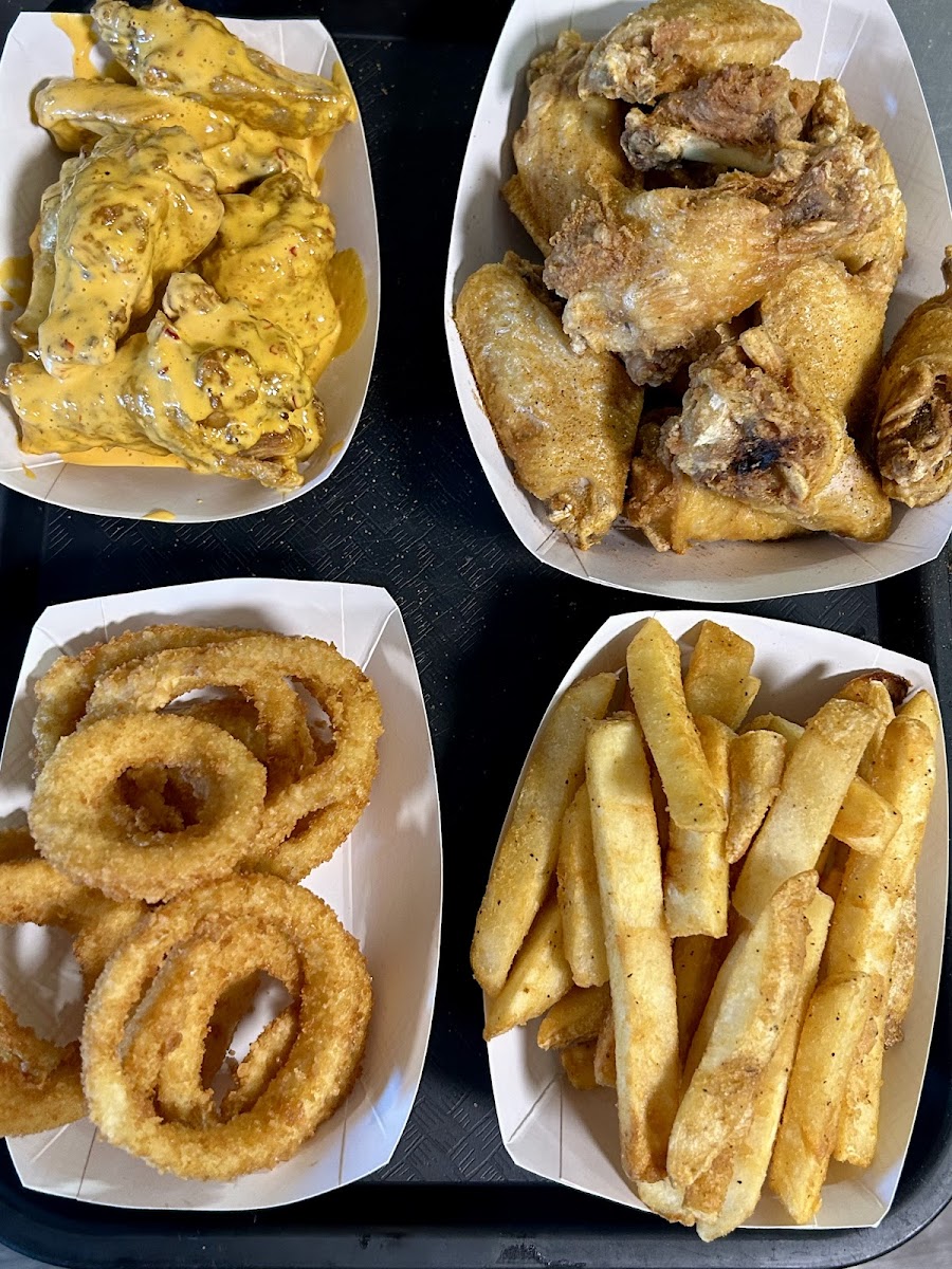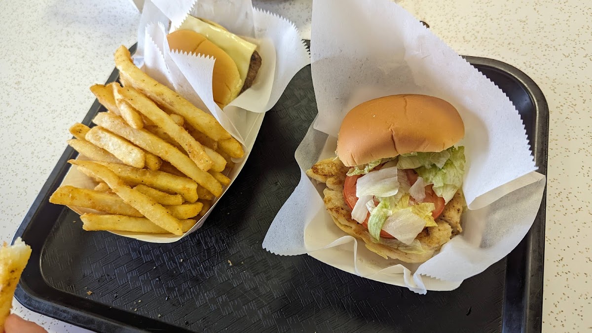 This restaurant serves delicious wings, fries, ice cream. They have affordable prices, convenient location near a Tesla Supercharger, and the fun, family-friendly atmosphere. They also have friendly and fast service.